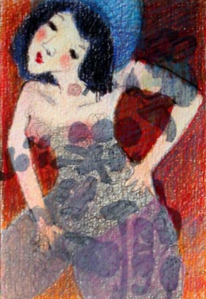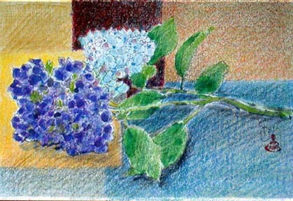 フルハガキに描いた女性 アジサイ