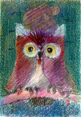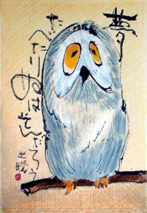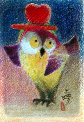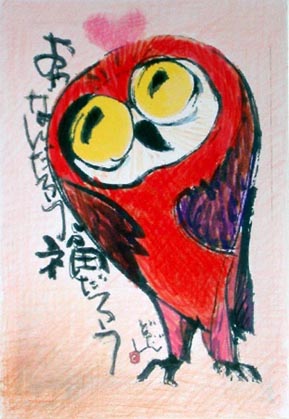 なんか嬉しい赤いフクロウ 夢食べたりない貧乏フクロウ